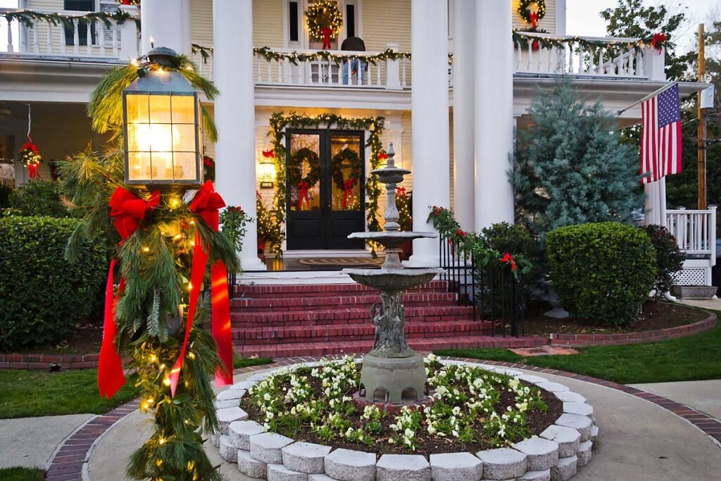 Just outside your accommodation, Edenton’s downtown comes alive for the season. Local boutiques deck their windows, offering handmade gifts and perfect last-minute treasures. Restaurants and cafés welcome you in from the chill for a hot cocoa or a comforting seasonal meal. Along the harbor, lights reflect off the water, framing historic cupolas and brick-lined streets in a soft glow.